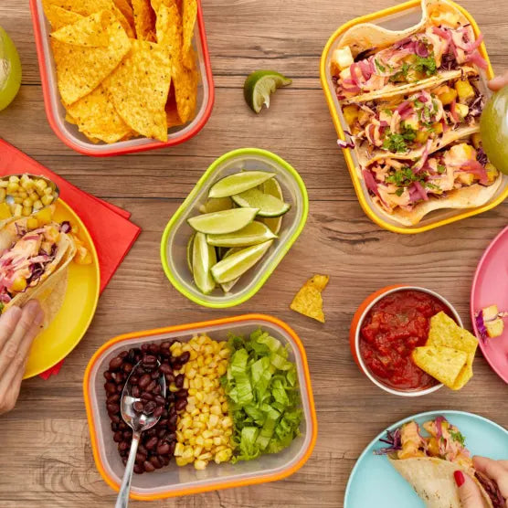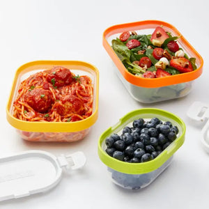 Take back your cupboard space with Zoku's brilliantly designed Neat Stack Collection of nesting food storage containers. This 7 piece set includes three different containers with lids, and a handy freezer pack that can fit into the top of the lids of the bigger container as well as inside the container to keep food cool and fresh.